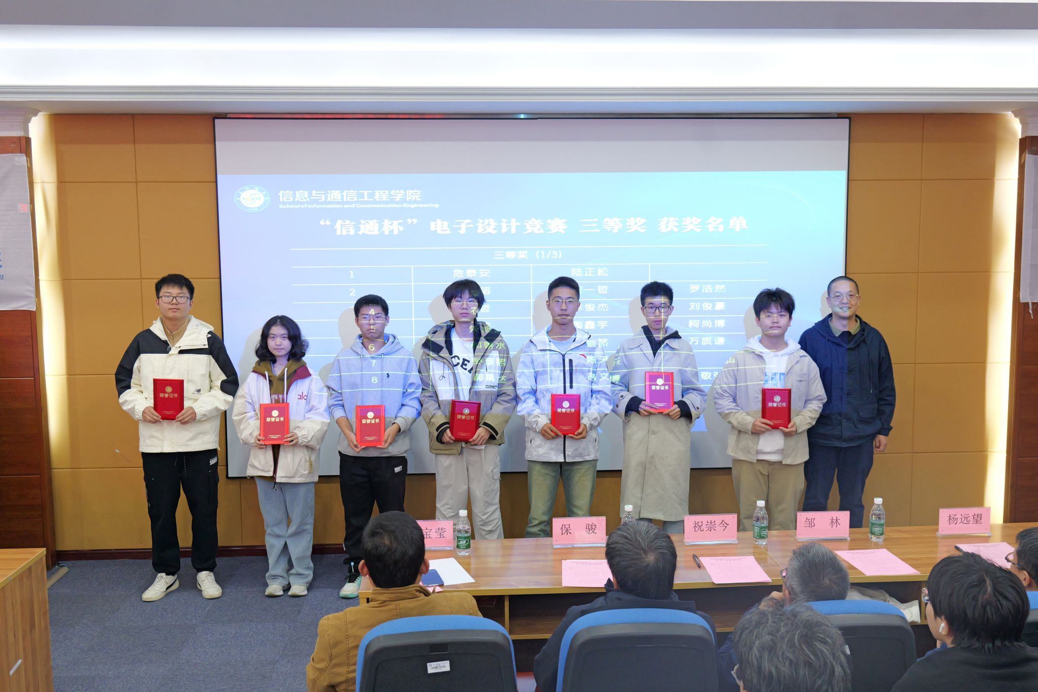 随后,老师们为在2025年“信通杯”电子设计竞赛中获奖的同学们颁奖,并对他们取得的优异成绩表示祝贺,希望各位同学能保持热爱,勇于挑战,再接再厉。