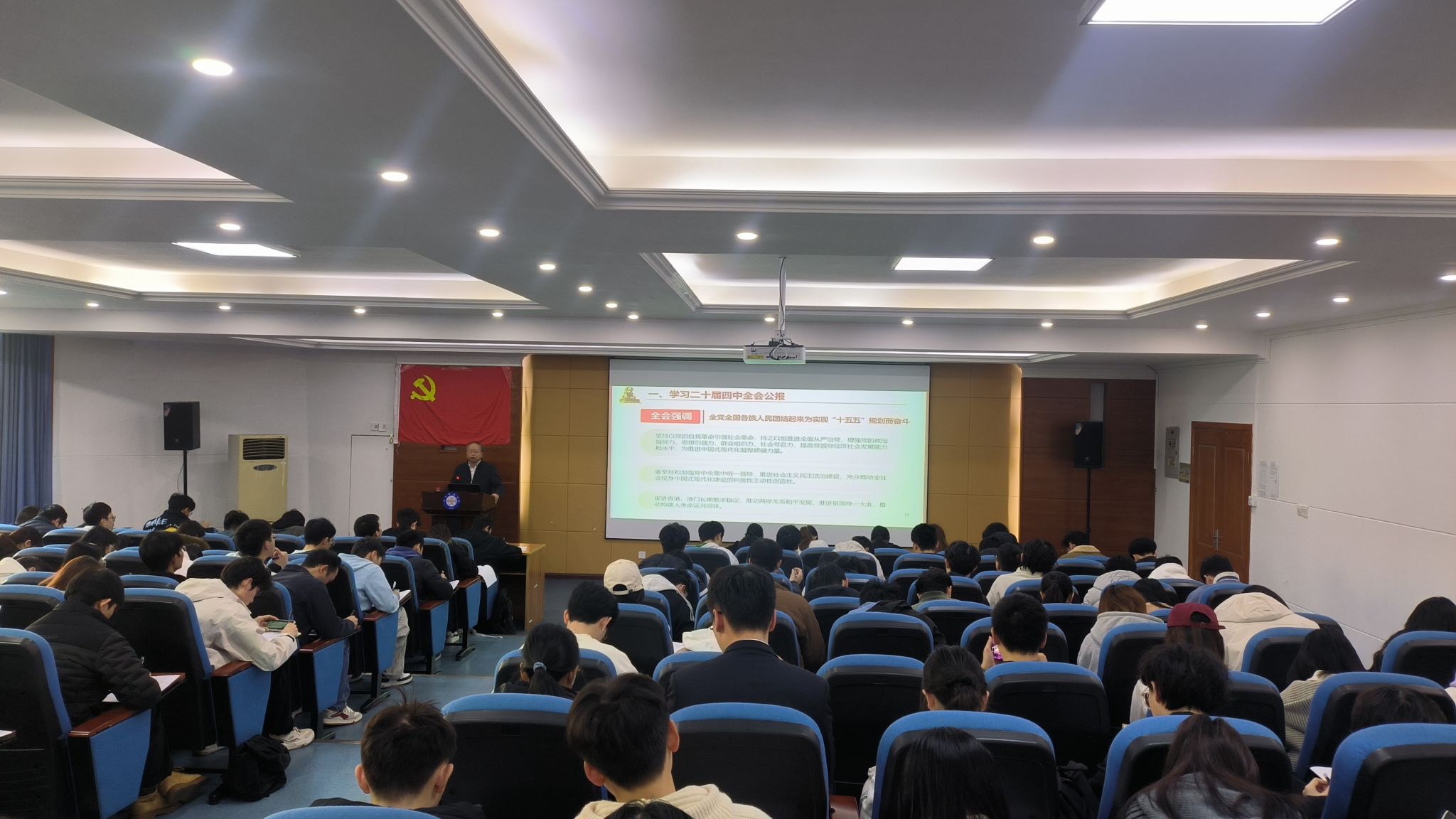 11月20日,学院分党校发展对象培训班开展专题授课,学院党委书记冷甦鹏教授以“深入学习贯彻党的二十届四中全会精神 争做新时代好青年”为主题,为170余名发展对象授课,引导学员们在理论学习中筑牢思想根基。