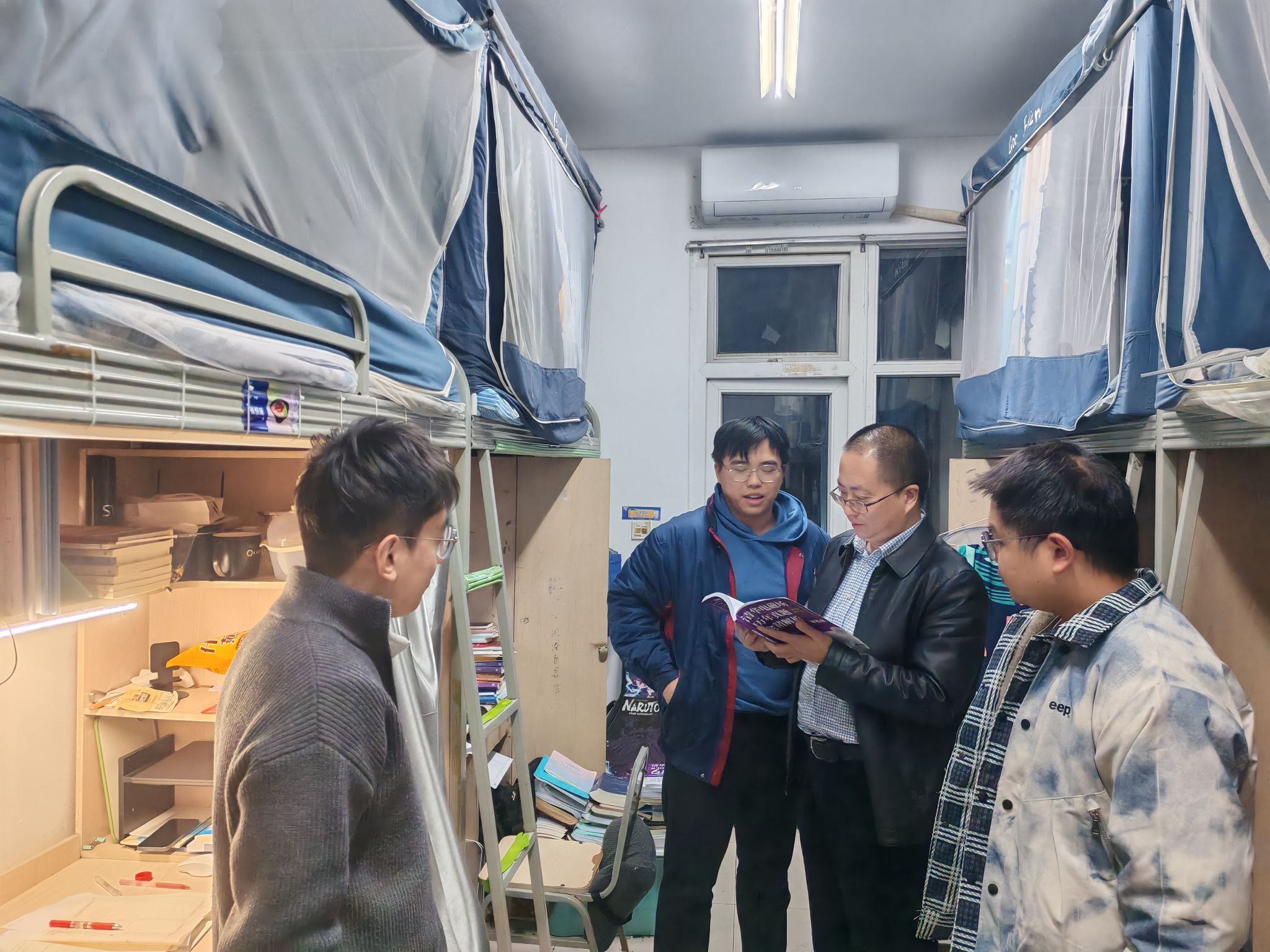 首先,蒋迪走进学生宿舍与同学们深入交流,细致询问大家的日常生活状态、课程学习难点及当前面临的发展困惑。从专业课学习压力到科研入门的迷茫,从考研备考的焦虑到就业方向的纠结,蒋迪认真听取每位同学的诉求并予以解答。