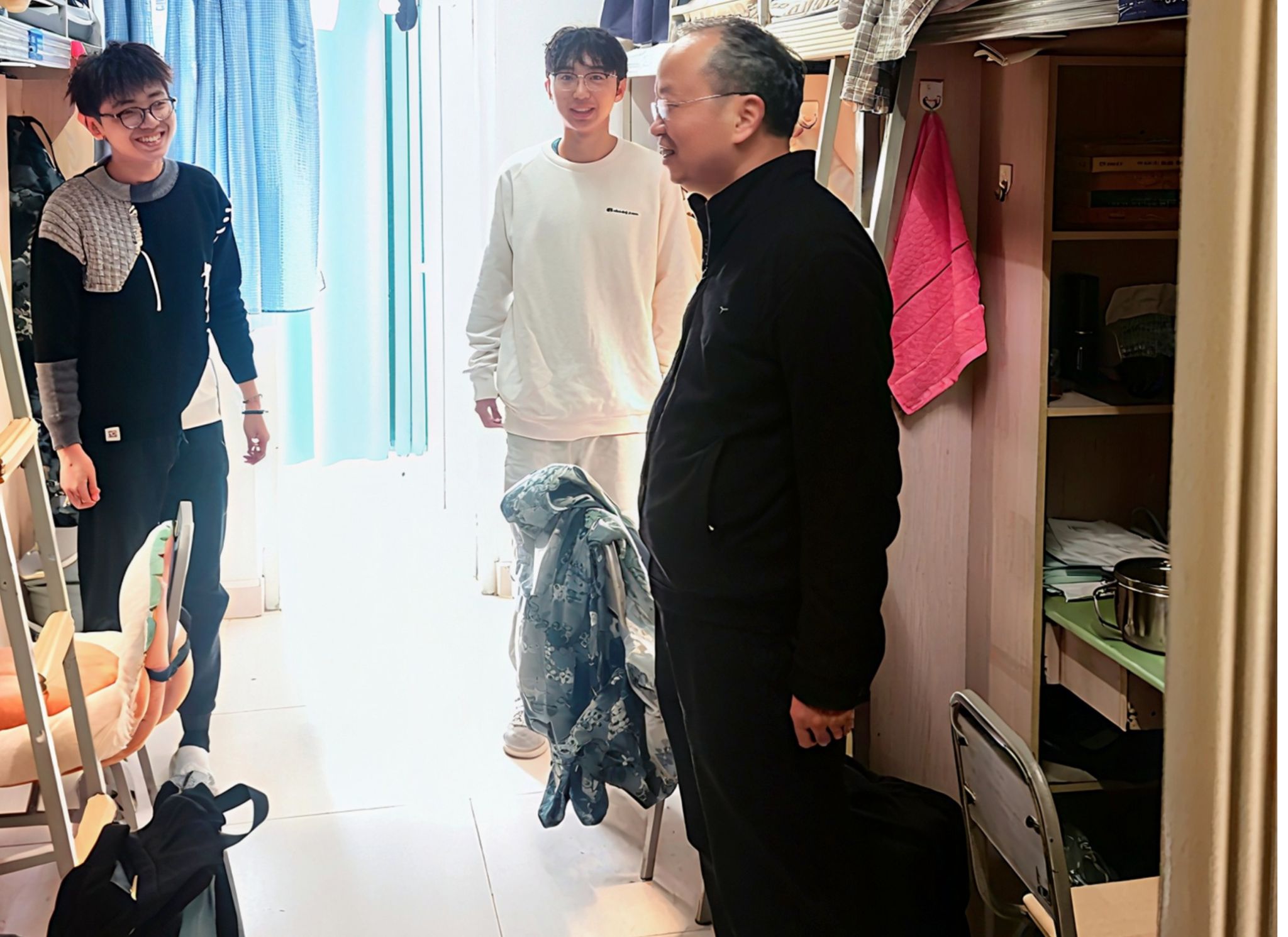 11月23日,冷甦鹏书记深入学院宿舍,走访看望学院2025级本科新生,与同学们亲切交流军训体会及入学后的学习生活情况,倾听学生心声,传递学院关怀。