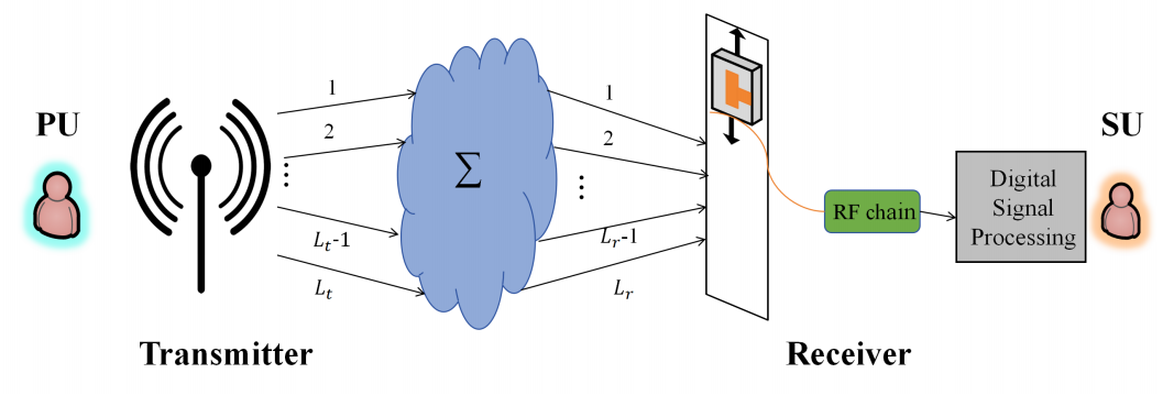 认知无线电中的频谱感知(Spectrum Sensing)是解决频谱资源短缺、提高频谱利用率的关键技术。在传统频谱感知系统中,由于天线位置固定,接收端往往容易受到空间中“深度衰落”(Deep Fading)区域的影响,导致感知性能遭遇瓶颈。近年来,可移动天线(Movable Antenna, MA)技术的兴起为打破这一限制提供了全新的物理层自由度。
