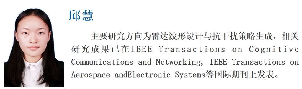 姜凯丽,信息工程系,研究方向为超宽带信号接收、雷达信号侦察与干扰、雷达抗干扰效能评估等,完成了国家自然科学基金面上项目、装备预研重点实验室基金、四川省科技支撑计划(苗子工程)及其他横向项目等;获得了“荣耀信通”优秀教职工奖、研究生电子设计大赛最佳指导教师等10余项;指导团队多名硕士生和博士生,其中五人获得研究生国家奖学金。发表了中科院SCI检索期刊论文20余篇,国防发明专利20余项。