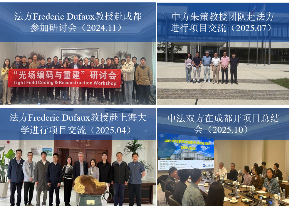 本项目来源于国家自然科学基金重点国际(地区)合作研究项目“动态光场的高效编码与高质量重建(项目编号:62020106011)”,执行周期为2021年1月至2025年12月。项目负责人为电子科技大学朱策教授,合作方包括上海大学安平教授团队、法国国家科学研究中心Frederic Dufaux教授团队和澳大利亚悉尼科技大学Qiang Wu教授团队。本项目工作概括如下: