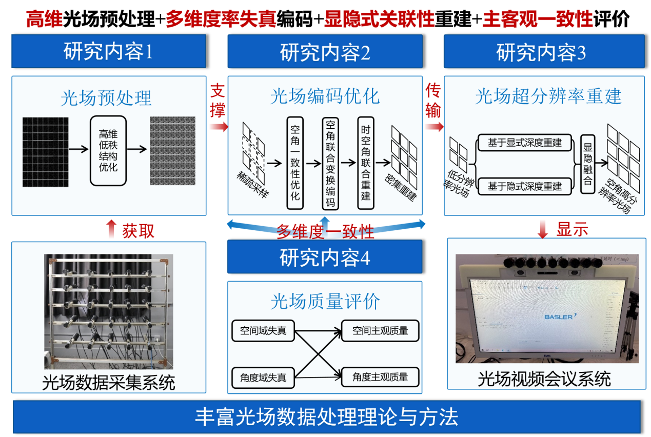 图1 “动态光场的高效编码与高质量重建”项目整体研究框架
