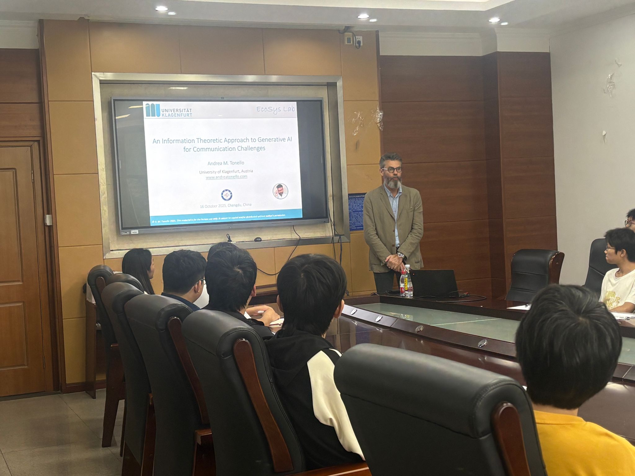 On October 16, the "Xintong Forum," hosted by the School of Information and Communication Engineering (SICE), welcomed Professor Andrea M. Tonello from the University of Klagenfurt, Austria. He delivered an academic lecture titled "An Information Theoretic Approach to Generative Al for Communication Challenges."