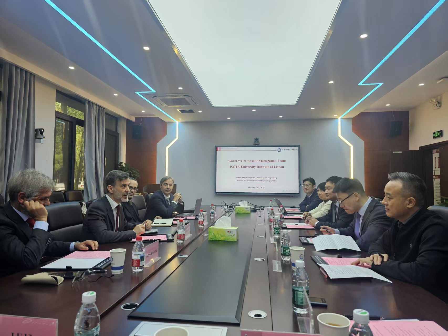 On October 28, a delegation led by Professor Ricardo Paes Mamede, Special Envoy of the Rector for China University Cooperation of ISCTE-University Institute of Lisbon, visited the School of Information and Communication Engineering. The two sides held in-depth discussions on topics including Sino-foreign cooperative education programs, summer short-term exchange projects, and doctoral academic exchanges. Relevant staff from the Office of International Cooperation and Exchange and the School of Information and Communication Engineering attended the meeting.