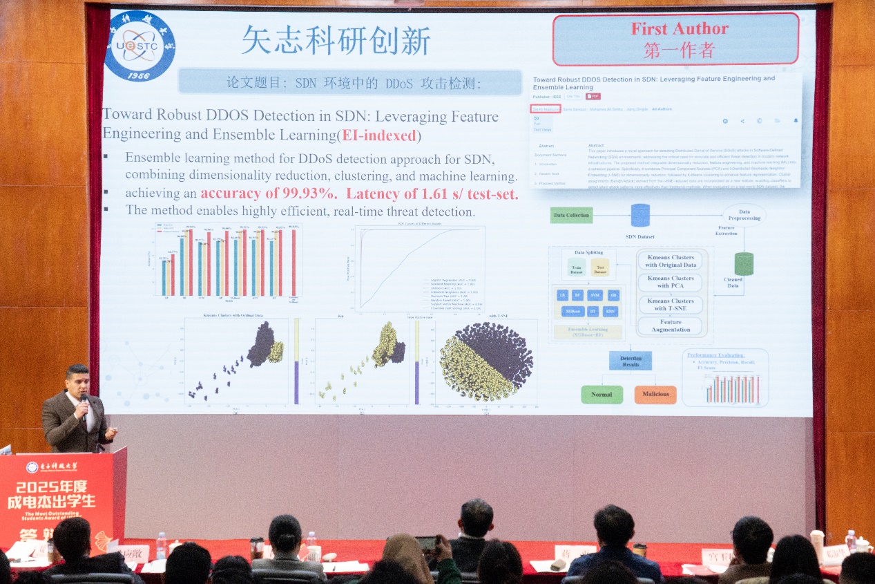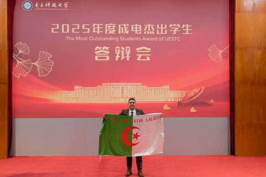 As the highest honor for students at UESTC, the competition attracted 27 outstanding graduate candidates from various schools across the university to compete on the same stage. After a rigorous review and intense defense process, Madoune Sid Ali, a doctoral student from the School of Information and Communication Engineering (SICE), stood out with his exceptional academic achievements and comprehensive leadership. He was successfully awarded the title of 2025 “UESTC Distinguished Student” (International Student), securing the only honor in this category for the year.